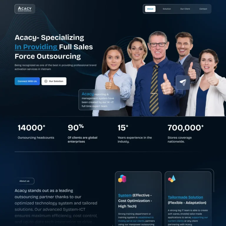 Giao diện được thiết kế tối ưu, mang đến trải nghiệm mượt mà, đồng thời phản ánh tinh thần đổi mới, kết nối và phát triển bền vững mà Acacy hướng đến.