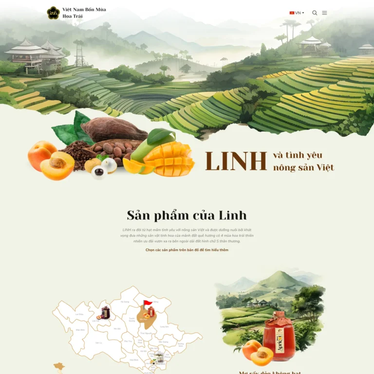 Website Việt Nam bốn mùa hoa trái được thiết kế như một câu chuyện mở, nơi khách hàng không chỉ xem mà còn cảm nhận.