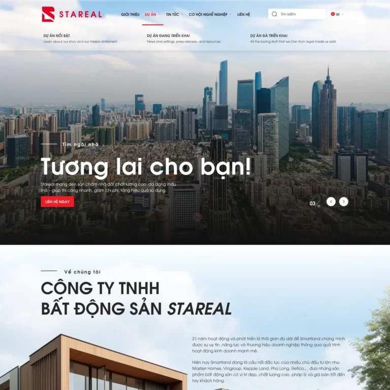 Với phong cách thiết kế sang trọng và tinh tế, website không chỉ là kênh thông tin mà còn là “bộ mặt số” phản chiếu giá trị cao cấp và tầm nhìn dài hạn của Stareal.