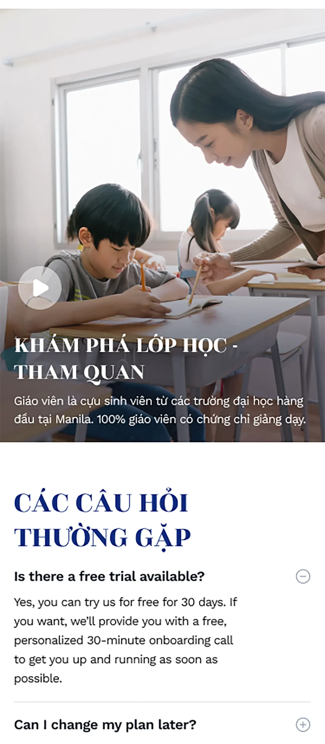Phong cách hình ảnh được ưu tiên từ học viên, lớp học thật, kết hợp icon hiện đại dạng line/flat để tăng sự gần gũi và tin cậy. Website được tối ưu responsive đa nền tảng, đảm bảo trải nghiệm mượt mà từ desktop, tablet đến mobile.