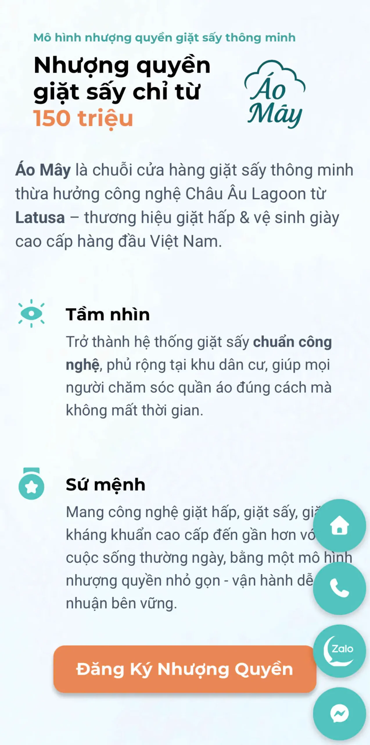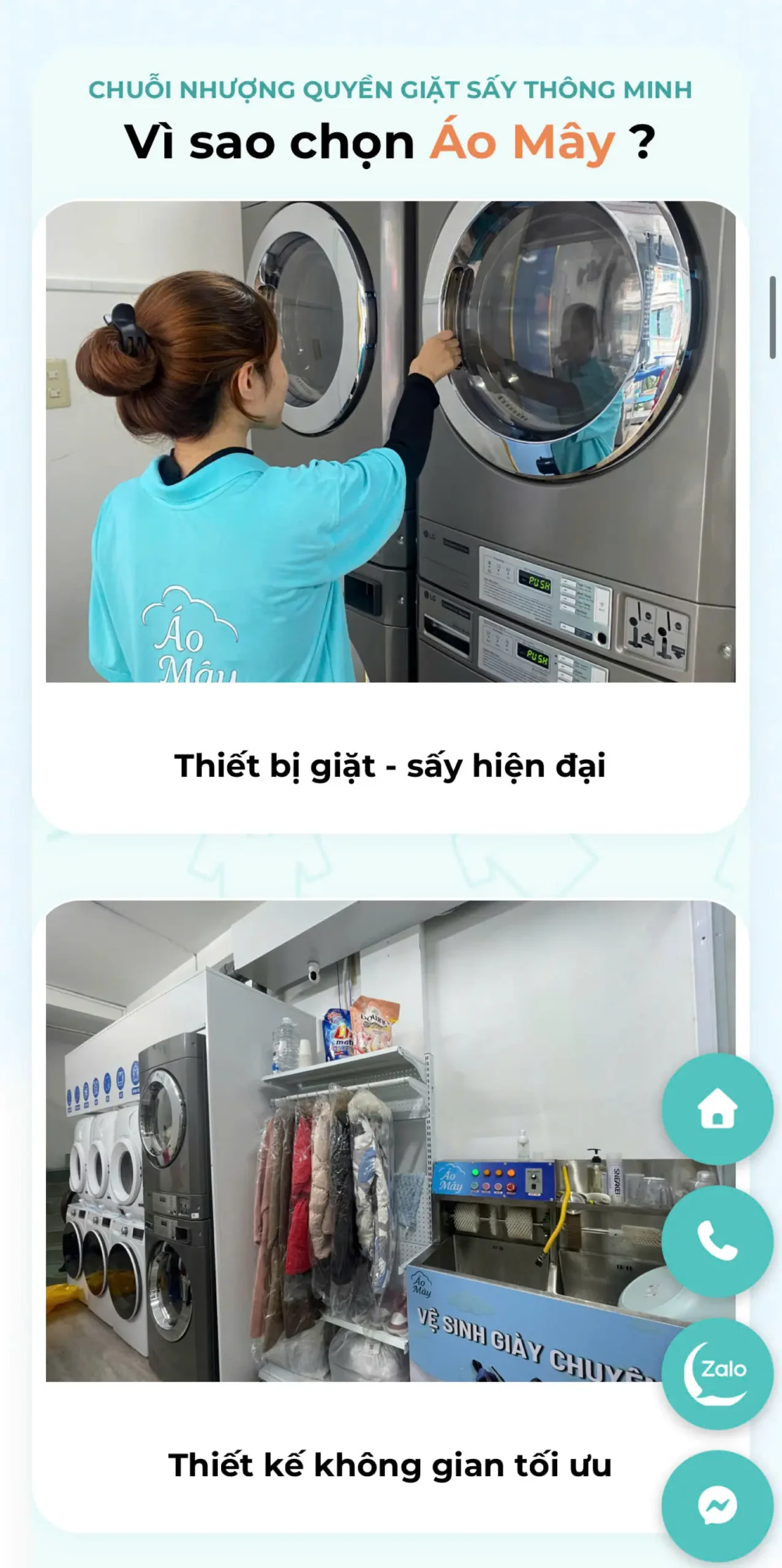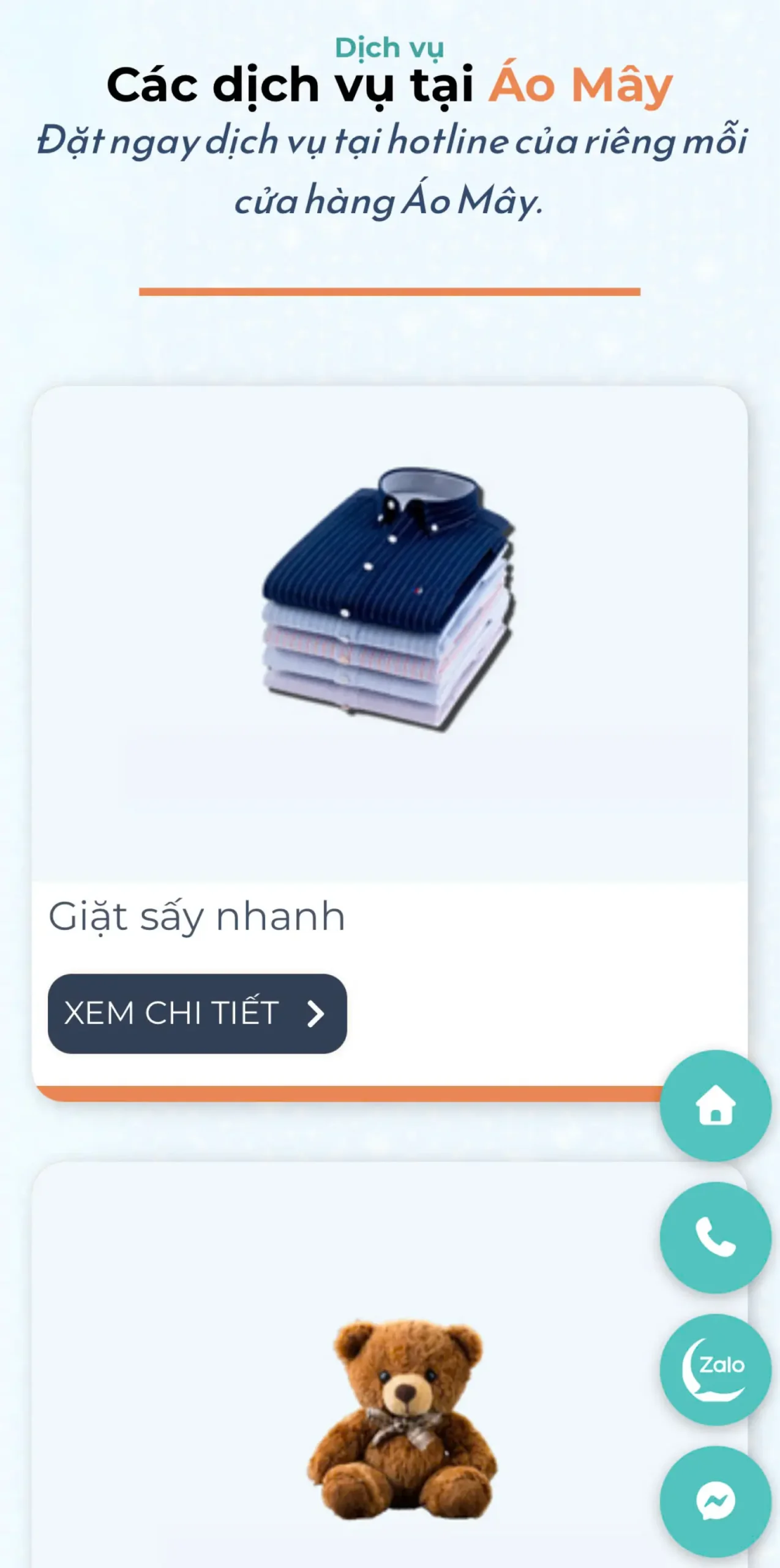 Website Áo Mây được xây dựng với mục tiêu trở thành cầu nối mang dịch vụ giặt sấy hiện đại đến gần hơn với khách hàng bận rộn ngày nay. Nền tảng trực tuyến này không chỉ giới thiệu hành trình chăm sóc quần áo, từ làm sạch, sấy khô đến hoàn thiện mà còn là không gian chia sẻ sự tinh tế, nhẹ nhàng trong từng thao tác chăm sóc trang phục.