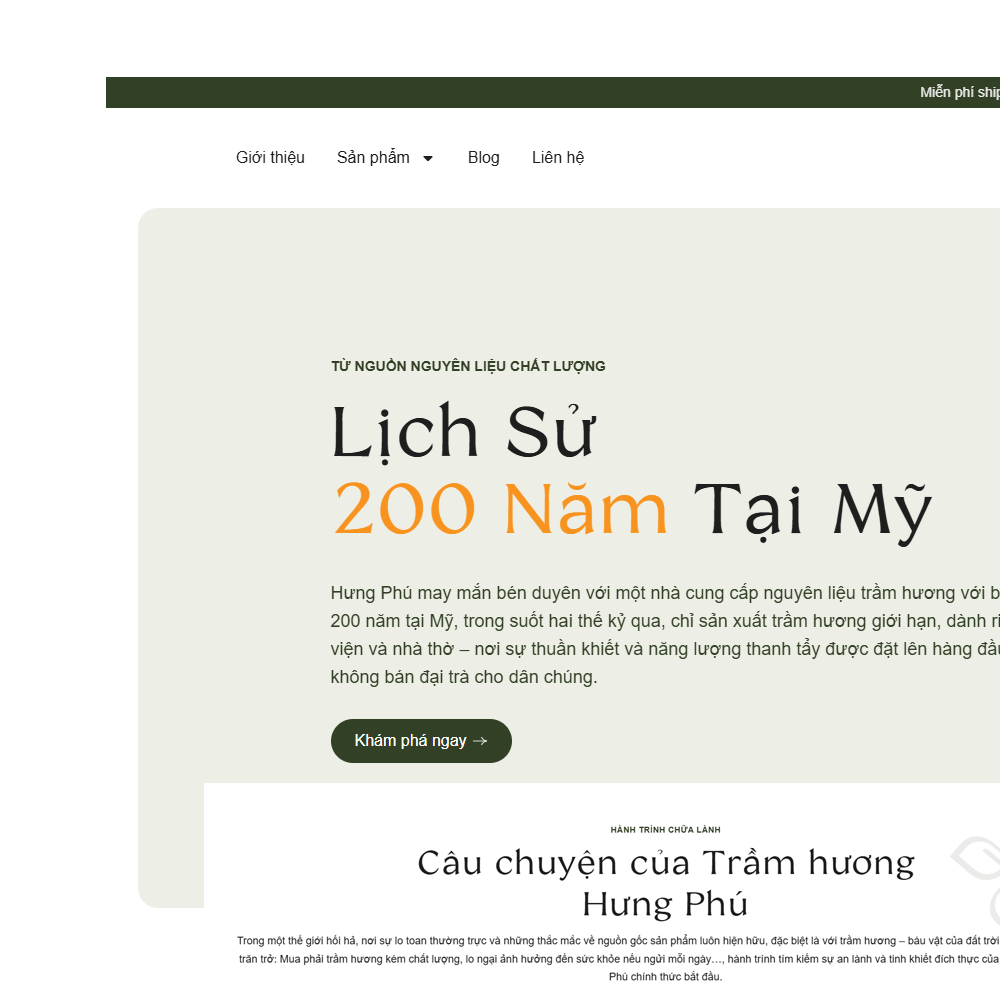 Trầm Hương Hưng Phú mang sứ mệnh kể lại câu chuyện về sự tinh khiết và an lành từ nguồn nguyên liệu trầm hương quý giá hơn 200 năm tại Mỹ quốc. Thương hiệu đã đồng hành cùng Theweb để kiến tạo một website mang đậm phong cách kể chuyện. Không chỉ là nơi trưng bày sản phẩm, website còn mở ra một hành trình cảm xúc, nơi mỗi hình ảnh và từng câu chữ được sắp đặt tinh tế, liền mạch. Thiết kế hiện đại, sạch sẽ, tối giản và sang trọng đã biến không gian trực tuyến thành cầu nối, đưa khách hàng chạm đến tinh thần an nhiên mà Trầm Hương Hưng Phú muốn lan tỏa.